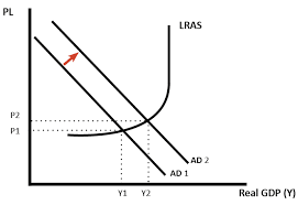- furthermore, there is an increase in the price level (demand-pull inflation) from p1 to p2