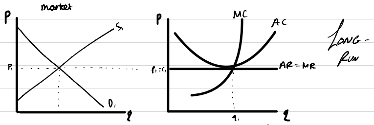 - existing firms attempt to profit maximise but now they are only able to make normal profits